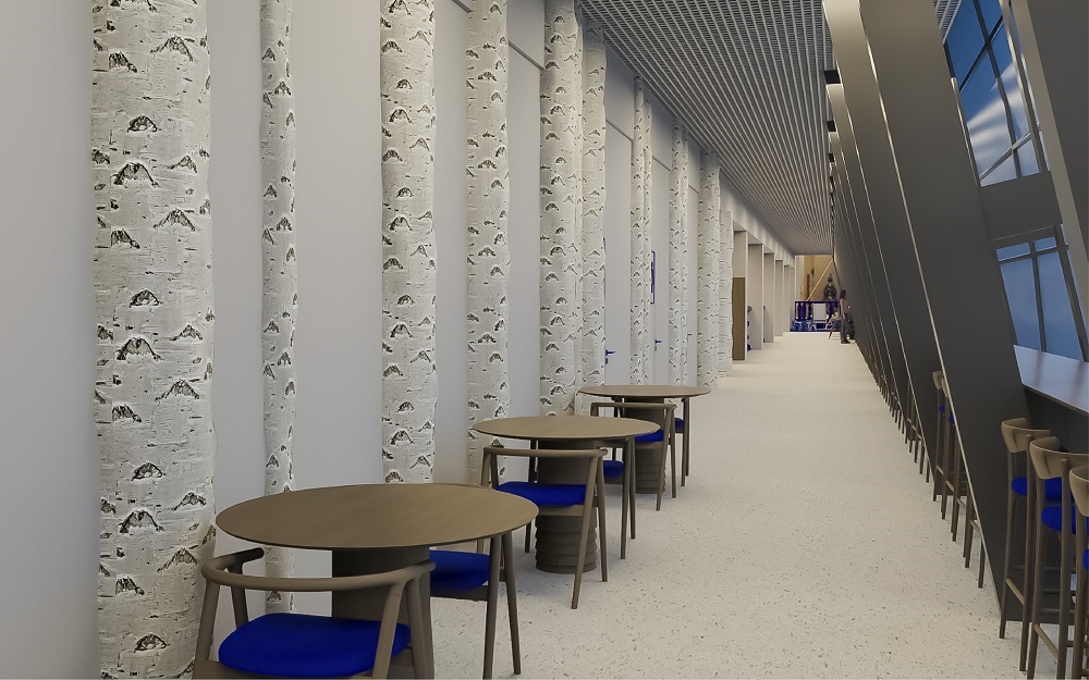 Также появится зона культурных и деловых событий для проведения мероприятий регионального и федерального уровней. Здесь оборудуют мультиформатный зал, конференц-залы, несколько переговорных комнат, зал для пленарных заседаний и пресс-центры. Уже в декабре здесь пройдёт первое событие — региональный хакатон «Кубок нейроконтента».