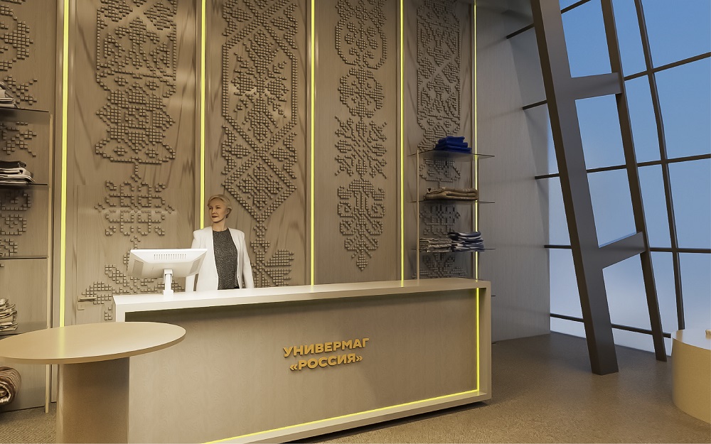 В новом центре можно будет познакомиться с продукцией российских и местных брендов — в универмаге «Россия». В ассортименте будет представлен широкий выбор продукции — от гастрономических сувениров до предметов интерьера.