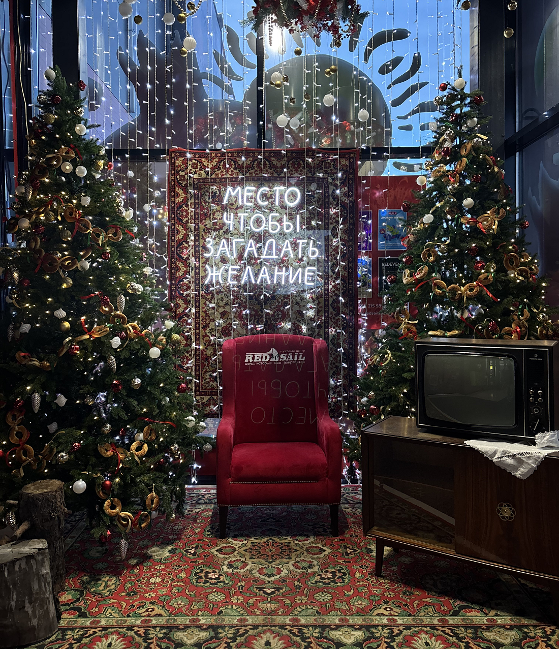Чтобы праздничное настроение охватило посетителей с первых минут, Redsail преобразился к Новому году. В торговом центре появилась волшебная фотозона, где каждый сможет сделать яркие снимки на память. Новогодние украшения и декор создают атмосферу уюта и праздника, приглашая окунуться в предновогоднюю суету без спешки и стресса.
