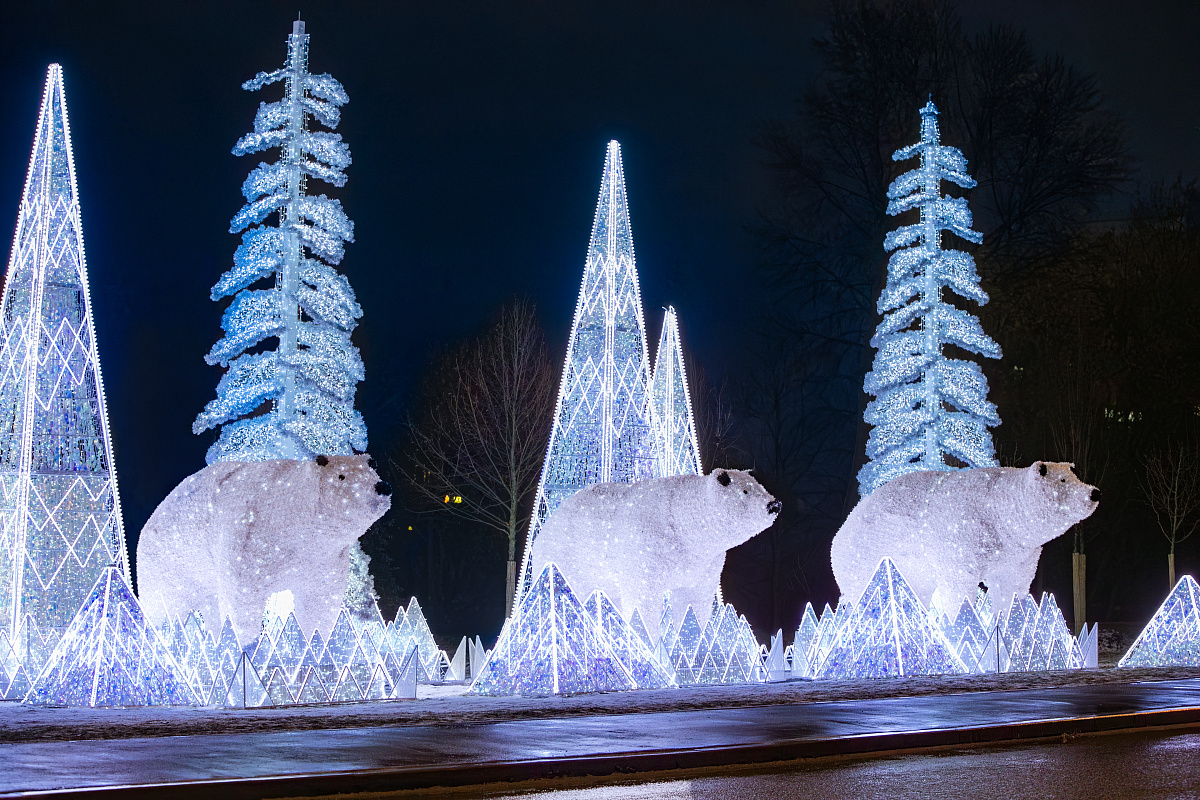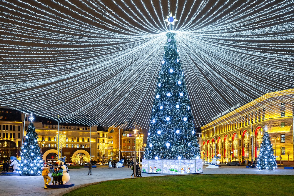 Видя наряды столицы, сложно поверить в новости о дефицитном бюджете, повышении налогов и рекордном росте цен на бензин и еду. Как пишет официальный сайт Москвы, в общей сложности специалисты смонтировали более четырёх тысяч объёмных конструкций, в том числе свыше тысячи елей украсили площади, улицы, парки и скверы.