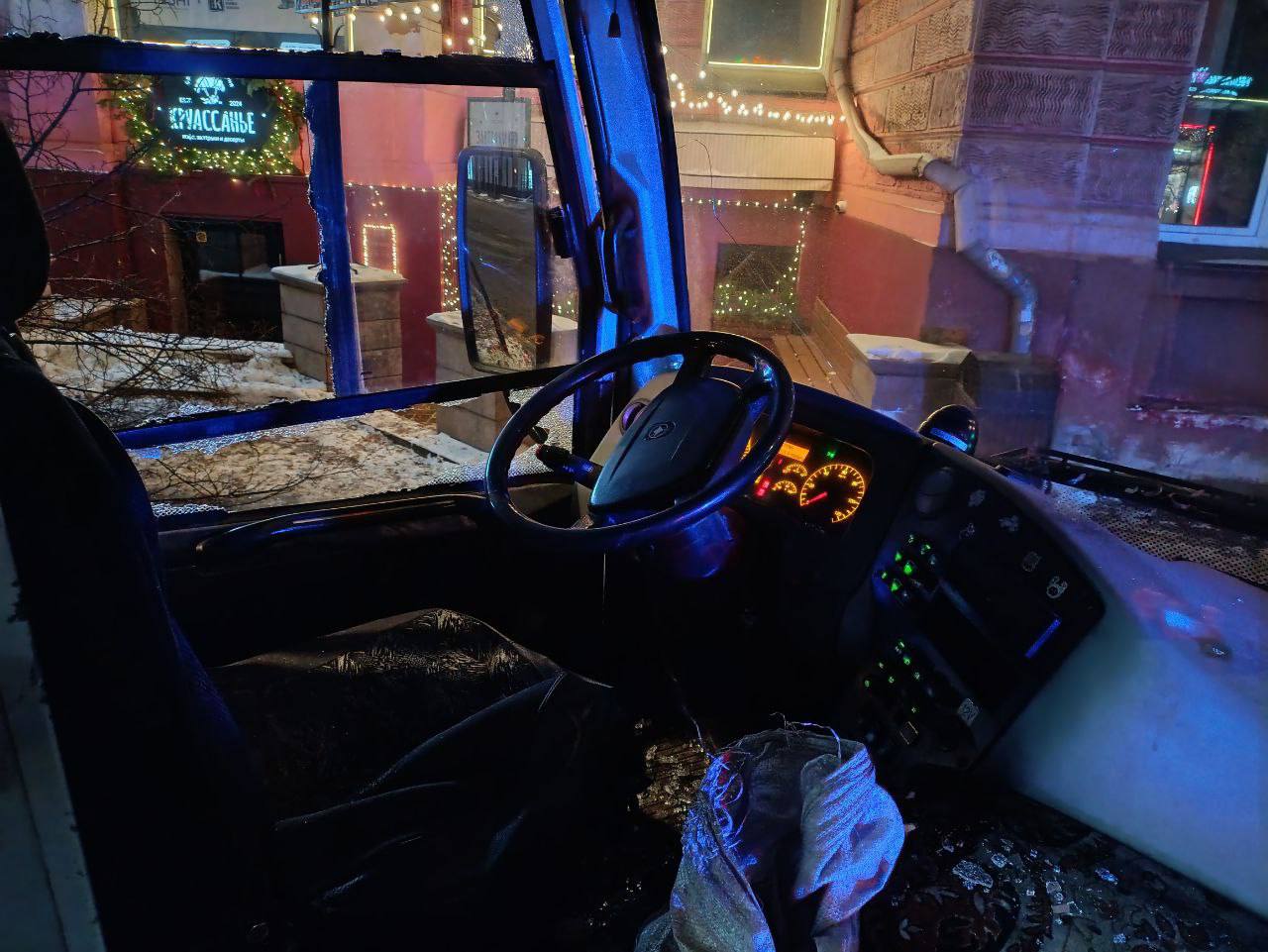 В автобусе находились пять пассажиров, никто не пострадал. Травмы получил водитель легковушки, его осматривают врачи.