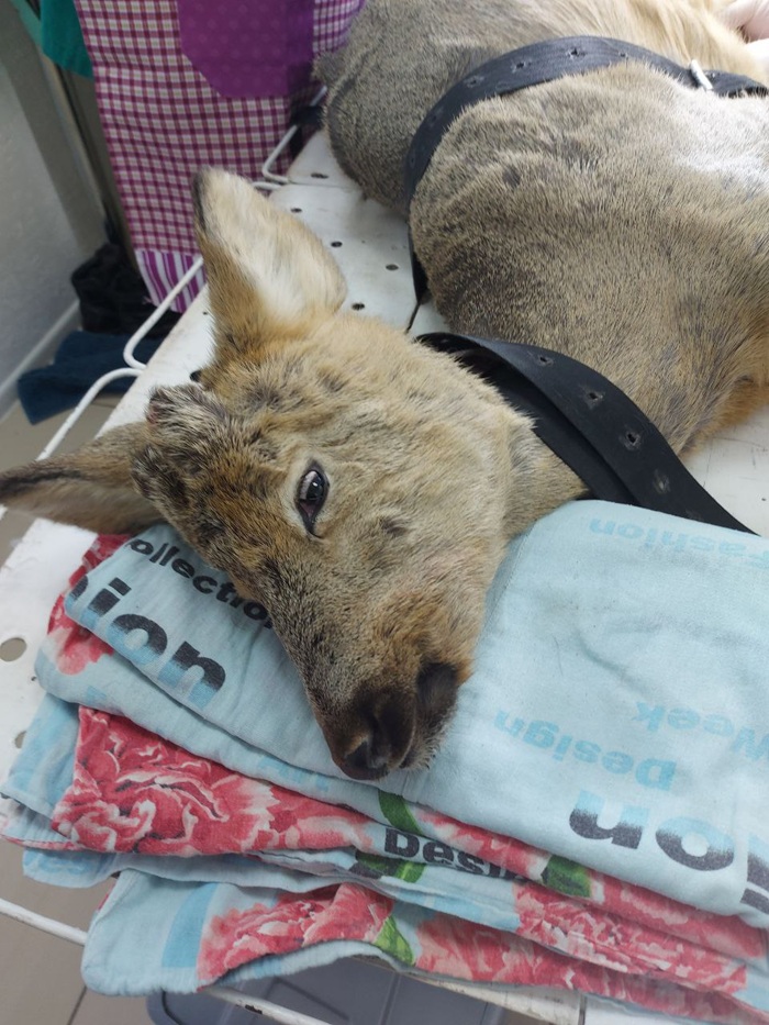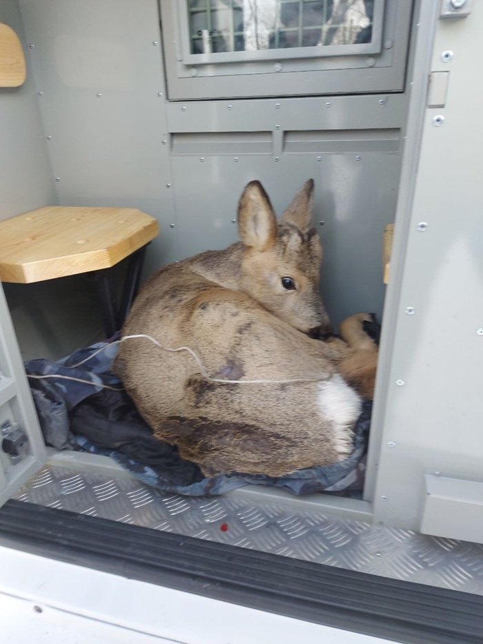 На месте полицейские обнаружили, что косуля ранена, и решили доставить её к ветеринару. Они погрузили испуганное животное в патрульный автомобиль и в кратчайшие сроки доставили в клинику, где ему оказали срочную помощь.