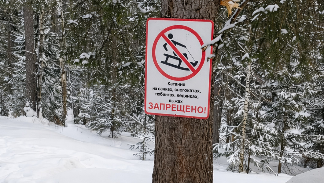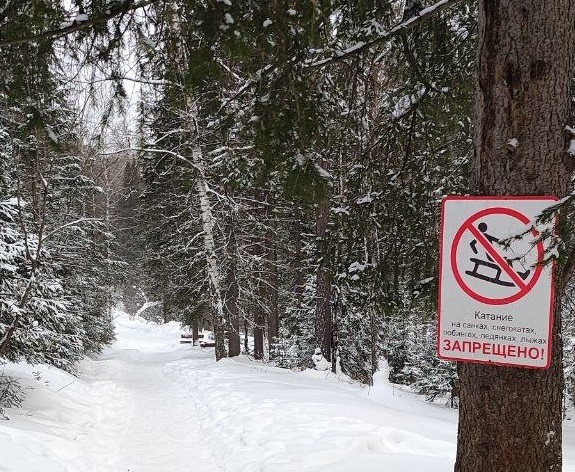 — Запрещено кататься на санках, снегокатах, тюбингах, ледянках, лыжах и других приспособлениях вблизи Лалетинской дороги общего пользования на Центральном входе национального парка.