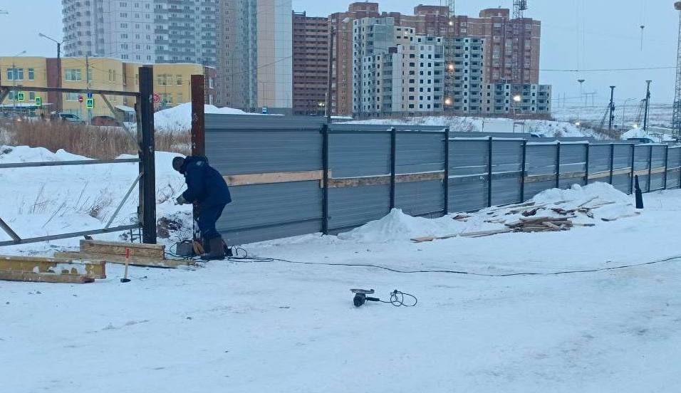 Рабочие уже огораживают площадку