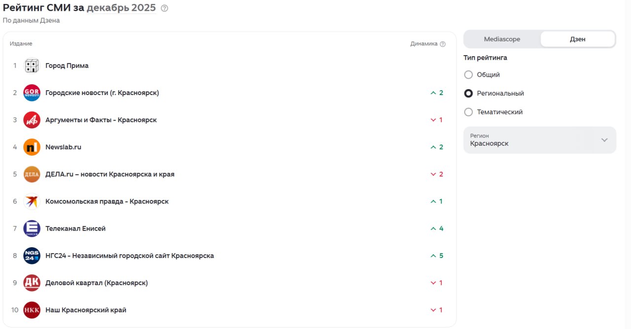 «Город Прима» занял первое место среди Дзен-каналов красноярских СМИ