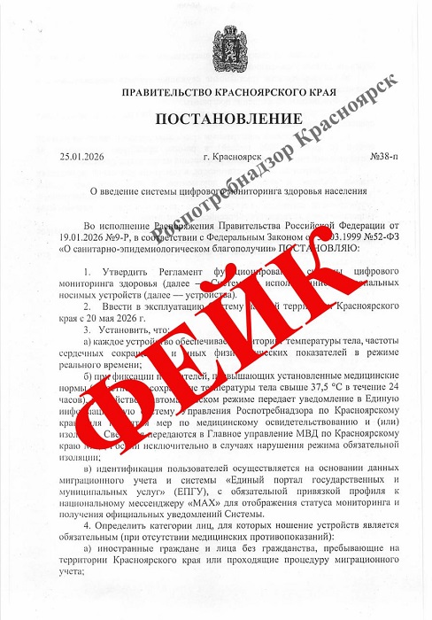 В социальных сетях распространяется фейковое постановление правительства Красноярского края об обязательном ношении браслетов для мониторинга здоровья.