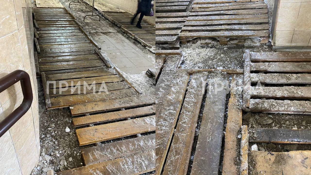 По словам местных жителей, на этой неделе на проспекте Свободный, 3 произошла коммунальная авария. В итоге в переходе вместо плитки появились доски. Красноярцы отмечают, что ходить по заледеневшему покрытию невозможно со 2 февраля.
