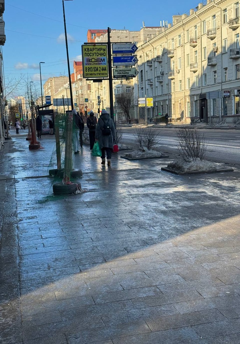 Красноярцы жалуются на скользкие тротуары