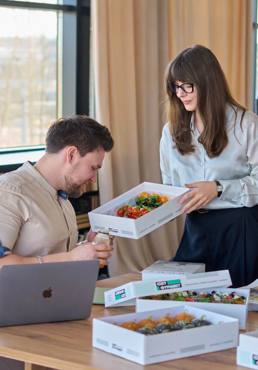 «Сет-Фуршет» — это разнообразное меню закусок, салатов, горячих блюд и десертов, упакованных в элегантные коробочки. Никакой дополнительной сервировки не требуется — просто откройте коробочку и наслаждайтесь!