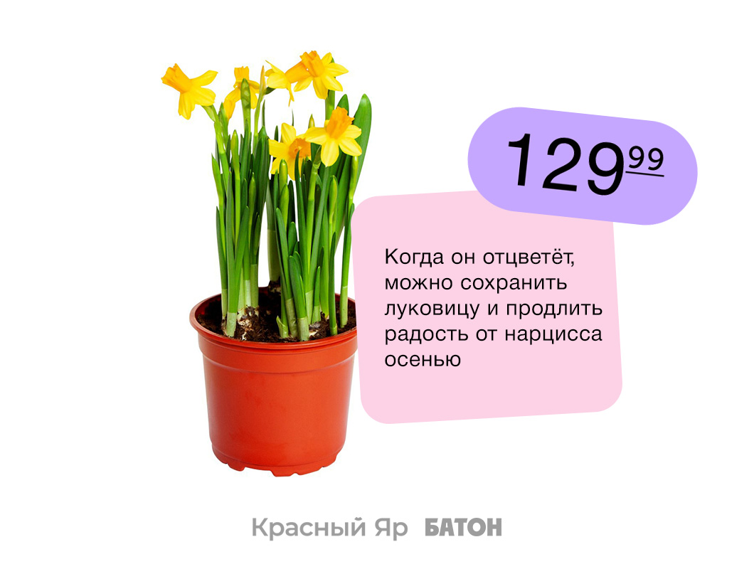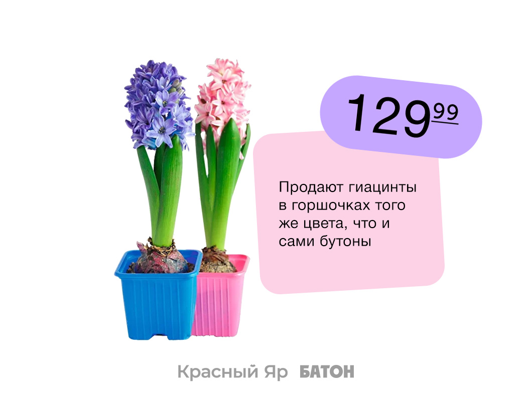 Не цветок, а маленький друг — гиацинт в горшке! Ваш ребёнок сможет ухаживать за ним, наблюдать за ростом и цветением. Яркий и ароматный гиацинт будто говорит: «Смотри, как много чудес в мире!» Кстати, в сети «Красный Яр» предусмотрительно продают гиацинты в горшочках того же цвета, что и сами бутоны.
