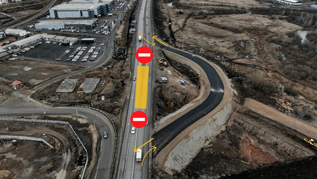 Движение транспорта перенесут на объездную дорогу. Её уже заасфальтировали — по одной полосе в каждую сторону. В ближайшие дни подрядчик установит ограждения, нанесёт необходимую разметку и выставит дорожные знаки.