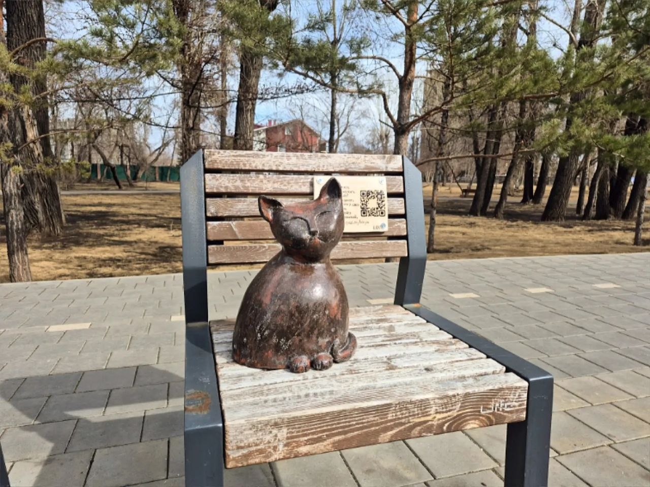 Где найти блог? Приходите в сквер познакомиться с котом и сканируйте QR-код на его скамейке.
