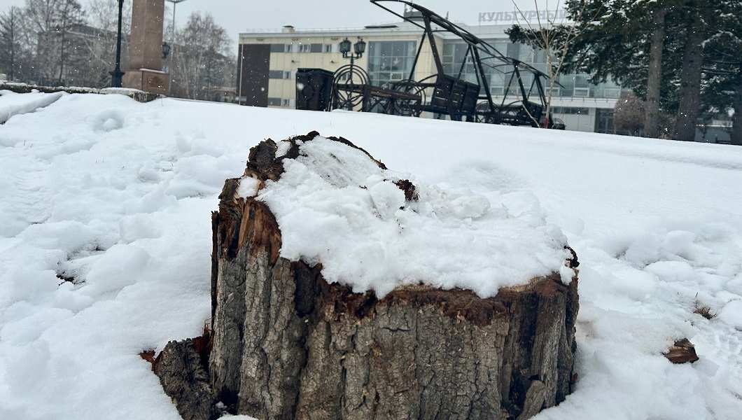 Десятки деревьев вырубили вокруг ГорДК в Красноярске
