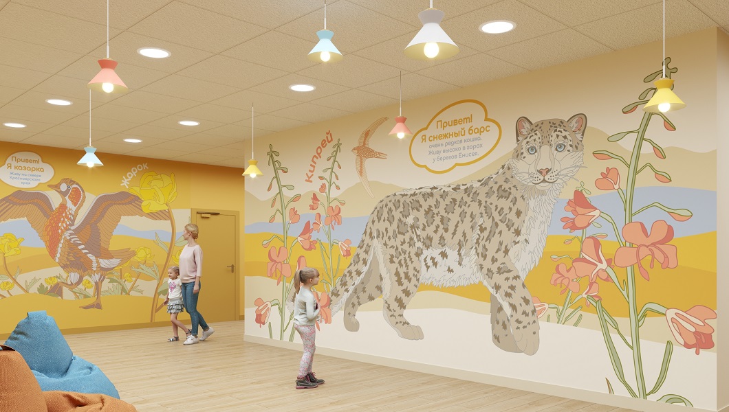 Еще одна особенность проекта — уникальный интерьер, который познакомит детей с природным многообразием Красноярского края, его обитателями и климатическими особенностями.