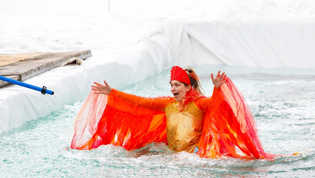 В костюмированных заездах на лыжах и сноубордах через 25‑метровый бассейн приняли участие 112 спортсменов, в том числе 20 детей в возрасте от 7 до 13 лет. Это рекорд за всю историю фестиваля, отметил генеральный директор Фанпарка Валерий Ильичёв.