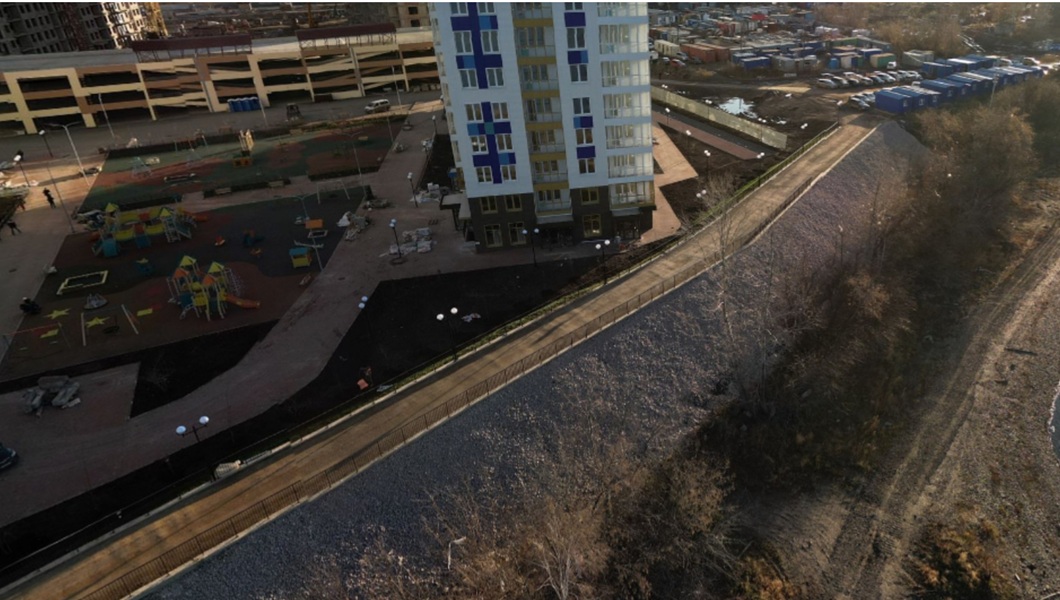 В этом районе не хватает комфортных общественных зон в пешей доступности. Сейчас территорию «украшают» гаражи, железная дорога, разбитый проезд и дикие кустарники. — благоустройство территории позволит создать такое пространство и сделать жизнь местных жителей комфортнее.