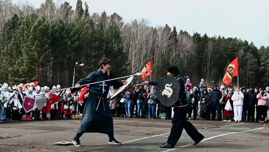 В Октябрьском районе Красноярска школьники и родители провели реконструкцию Куликовской битвы.