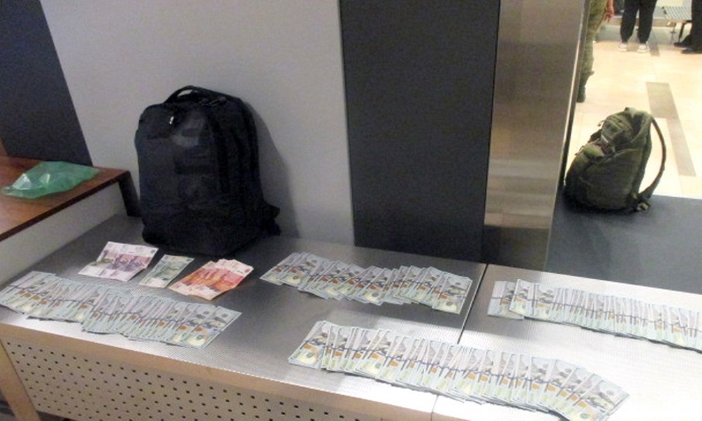 Мужчина рассказал сотрудникам, что везёт с собой наличные деньги, но назвал сумму вдвое меньше. В ходе досмотра деньги обнаружили в поясной сумке, спрятанной в рюкзаке. Часть средств мужчина держал в карманах брюк.