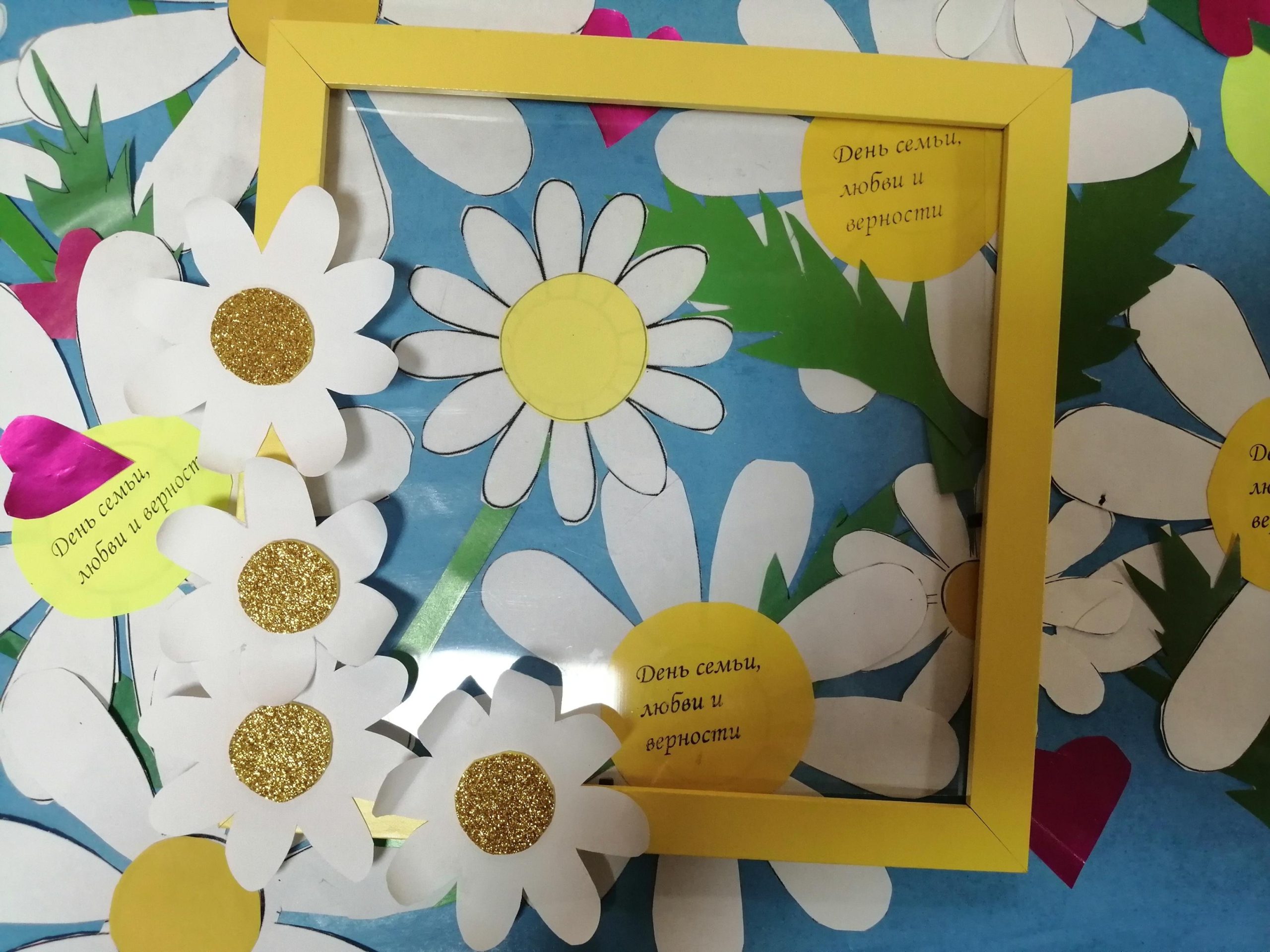 Участники мероприятия, взяв в руки ножницы, разноцветные листы картона, бумаги, бижутерию для декора и клей, смастерят оригинальную фоторамку ко Дню семьи, любви и верности.