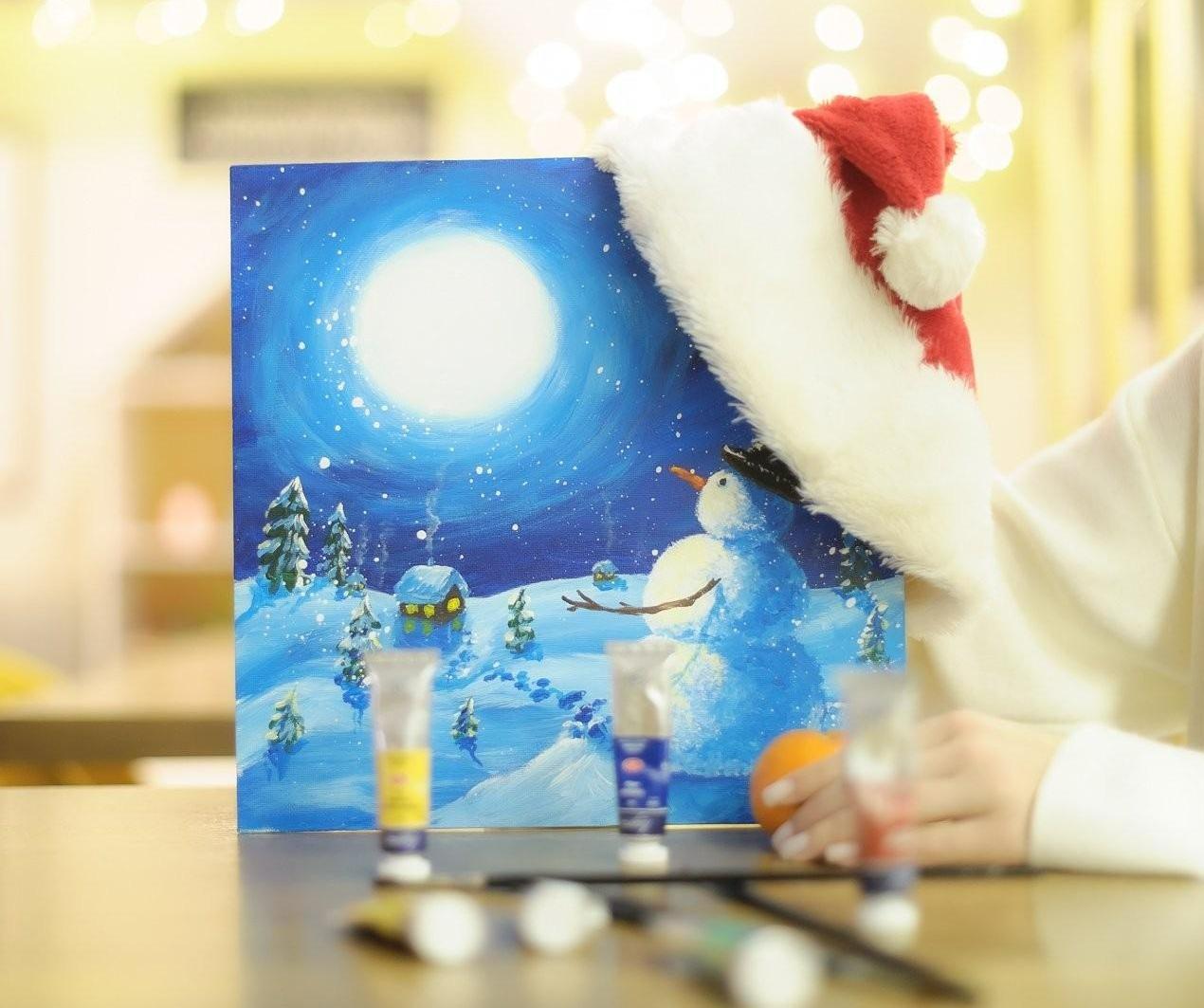 Рождественская картина на холсте станет