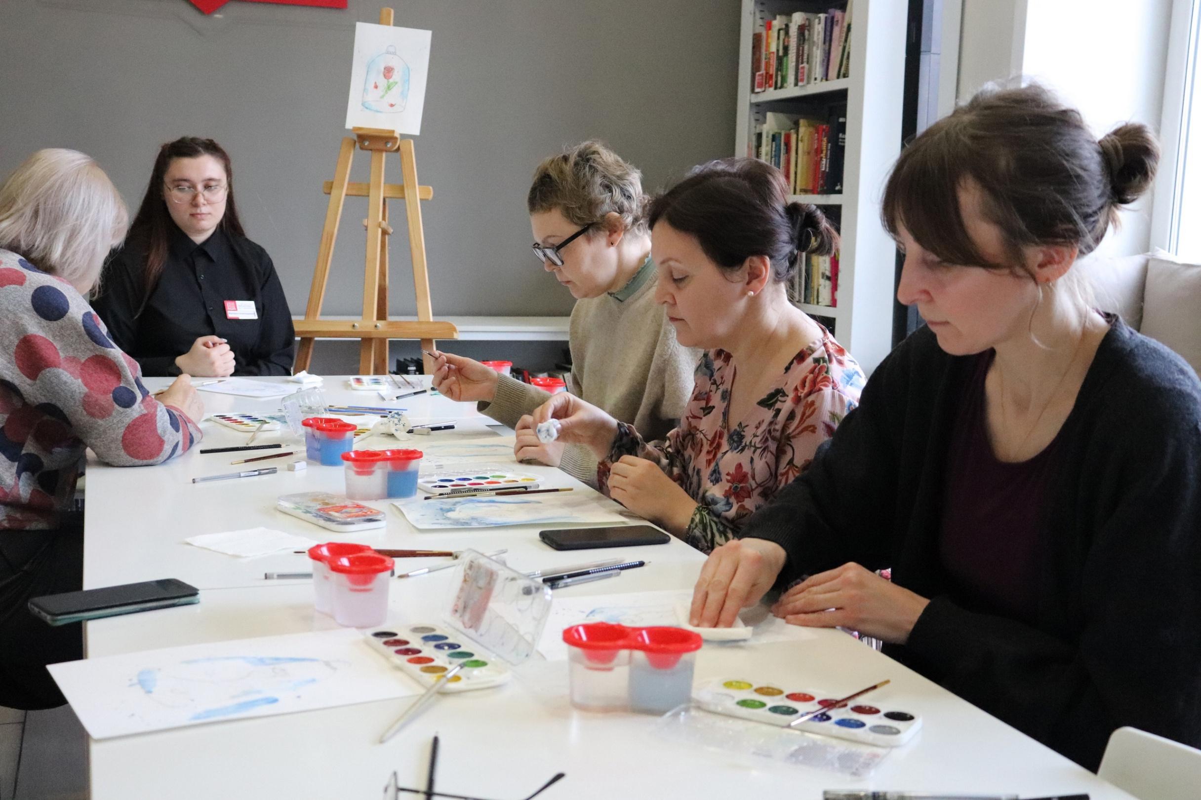 В творческой мастерской участники познакомятся с акварелью, узнают о ее особенностях и техниках рисования этим материалом. Они попробуют изобразить пейзажи из произведения В.П. Астафьева и выразят свои творческие способности, через любовь к родному краю, величию и богатству сибирской тайги. Материалы для творчества предоставляются организатором.
