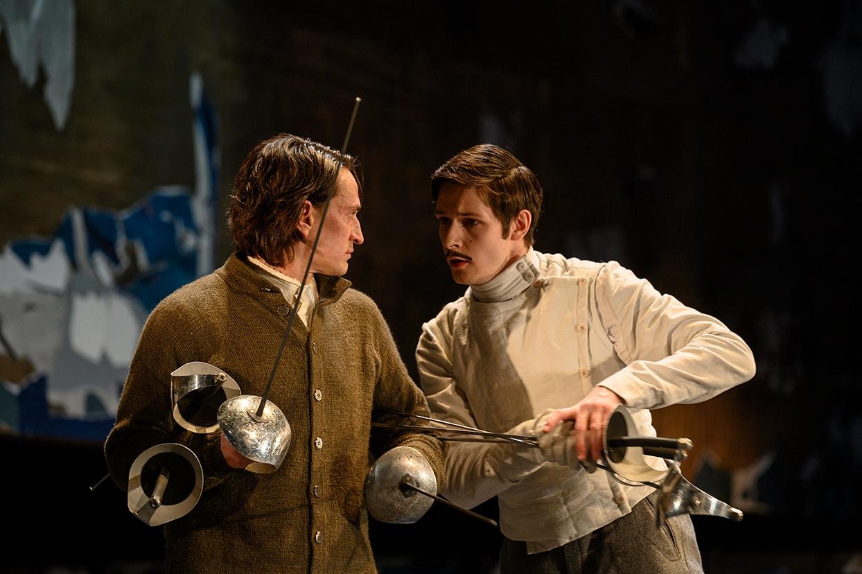 В спектакле много музыкальных номеров – зонгов, наивных и яростных. «Сирано де Бержерак» – это пьеса, в которой люди решают свои проблемы при помощи шпаги, поэтому на сцене фехтуют. Но Ростан писал своего «Сирано» через 200 лет после жизни его реального прототипа, это романтически преломленная реальность. И это дает постановщикам право тоже сочинять свой мир. Создатели спектакля берут историческое фехтование и размышляют, что такое фехтование в XXI веке. Что это за способ общения – обмен уколами? Например, комментарии к постам в соцсетях – что это, как не словесный укол?