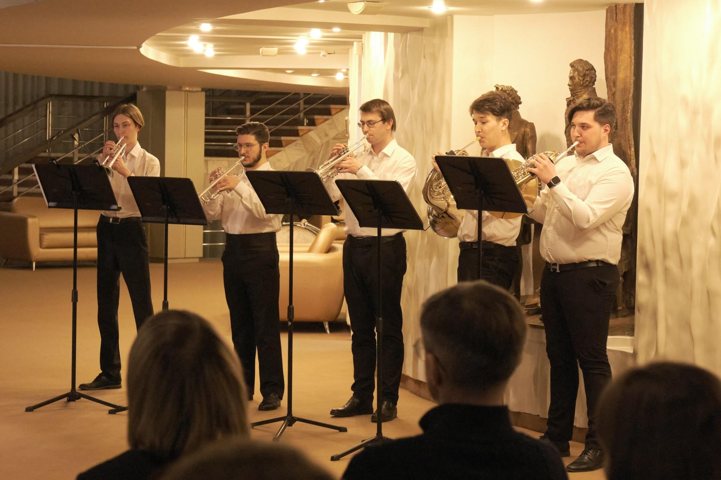 В концерте принимают участие брасс-ансамбль под управлением Сергея Сырохватова и струнный камерный оркестр Дмитрия Косолапова.