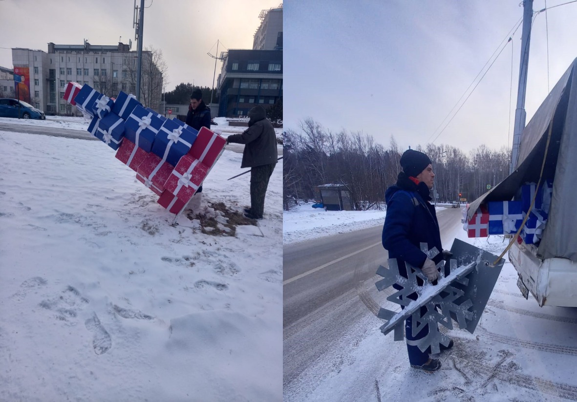 С красноярских улиц убирают новогодние украшения