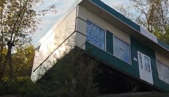 На Никитина павильон повис в воздухе после обрушения склона