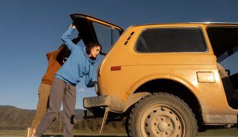 В Красноярском крае медведь-попрошайка терроризирует водителей на трассе