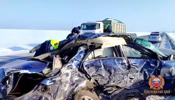 В Красноярском крае два человека погибли в лобовом ДТП иномарки и грузовика
