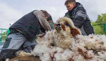 В красноярском «Роевом ручье» начали стричь альпак. Смотрим «до» и «после»
