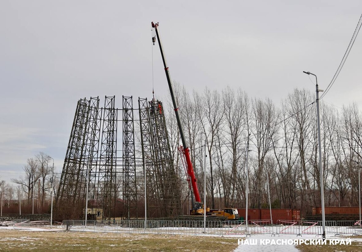В Красноярске на острове Татышев начали устанавливать ёлку
