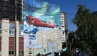 В Красноярске рисуют мурал с медведем и ледоколом