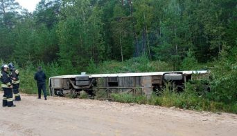 На трассе в Красноярском крае пассажирский автобус улетел в кювет