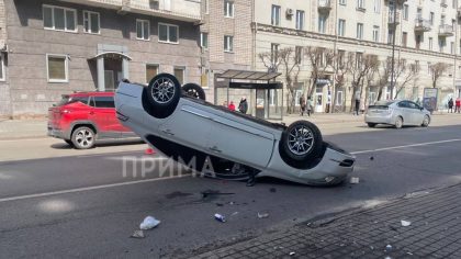 Новости В центре Красноярска перевернулась иномарка