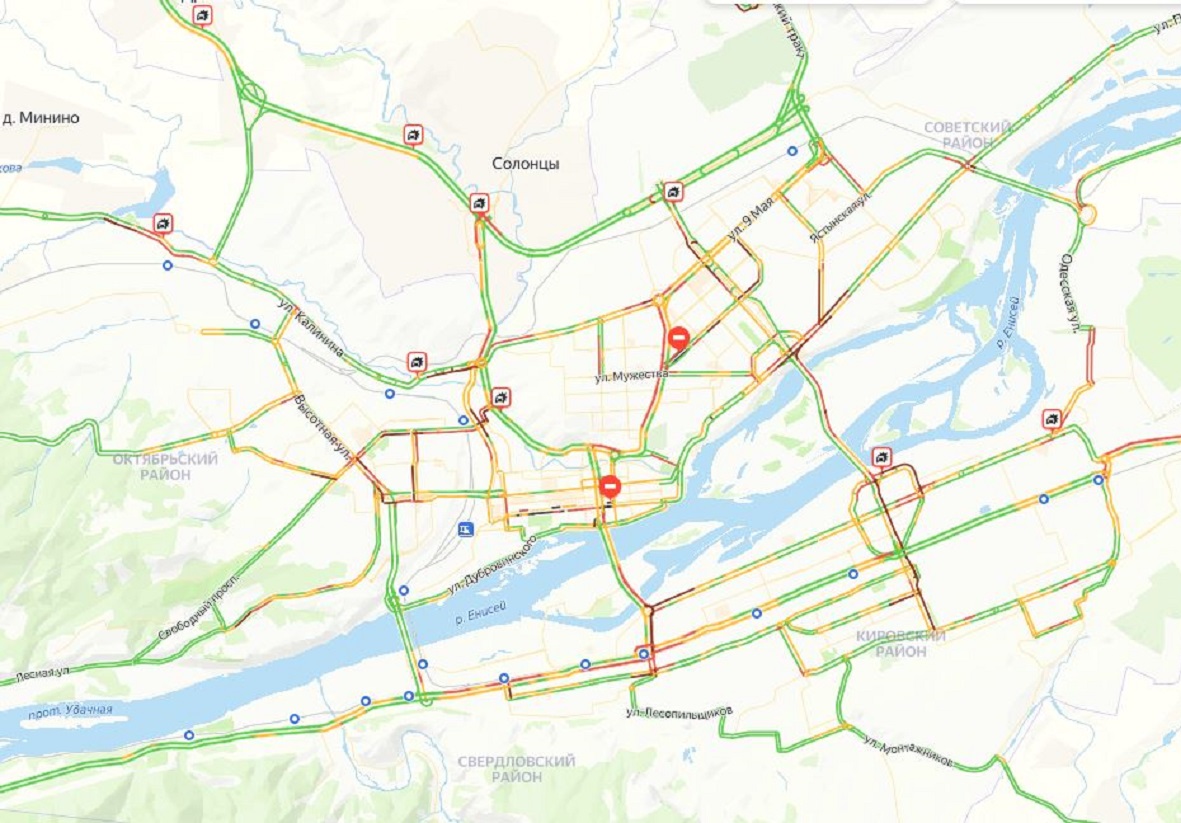 Утренний снегопад поставил Красноярск в жёсткие пробки