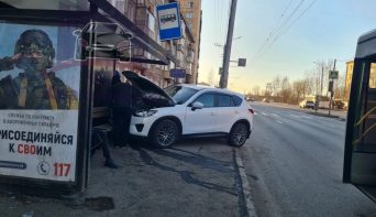 Иномарка в Красноярске на полном ходу въехала в остановку