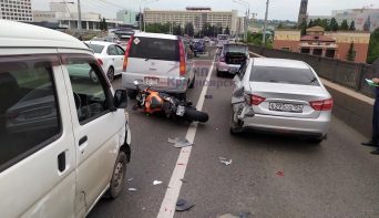 Мотоциклист влетел в машину на Коммунальном мосту