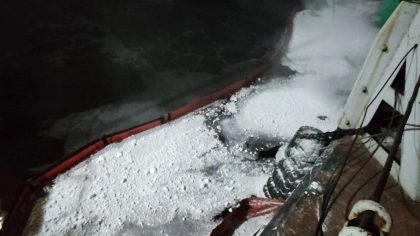 Дизельное топливо вытекло из затонувшего на Енисее теплохода