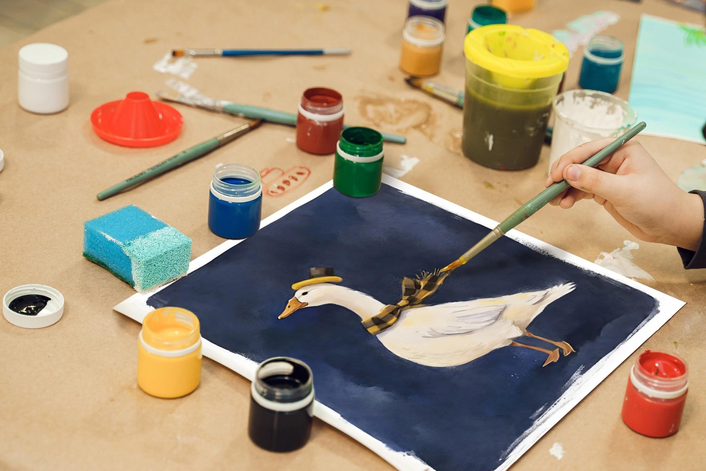 Дети на занятиях в музее осваивают разные техники и материалы, в этот раз попробуют рисовать гуашью. Участники мастер-класса познакомятся с основами работы с гуашью, научатся смешивать цвета на палитре и создадут свою иллюстрацию с милым гусем.