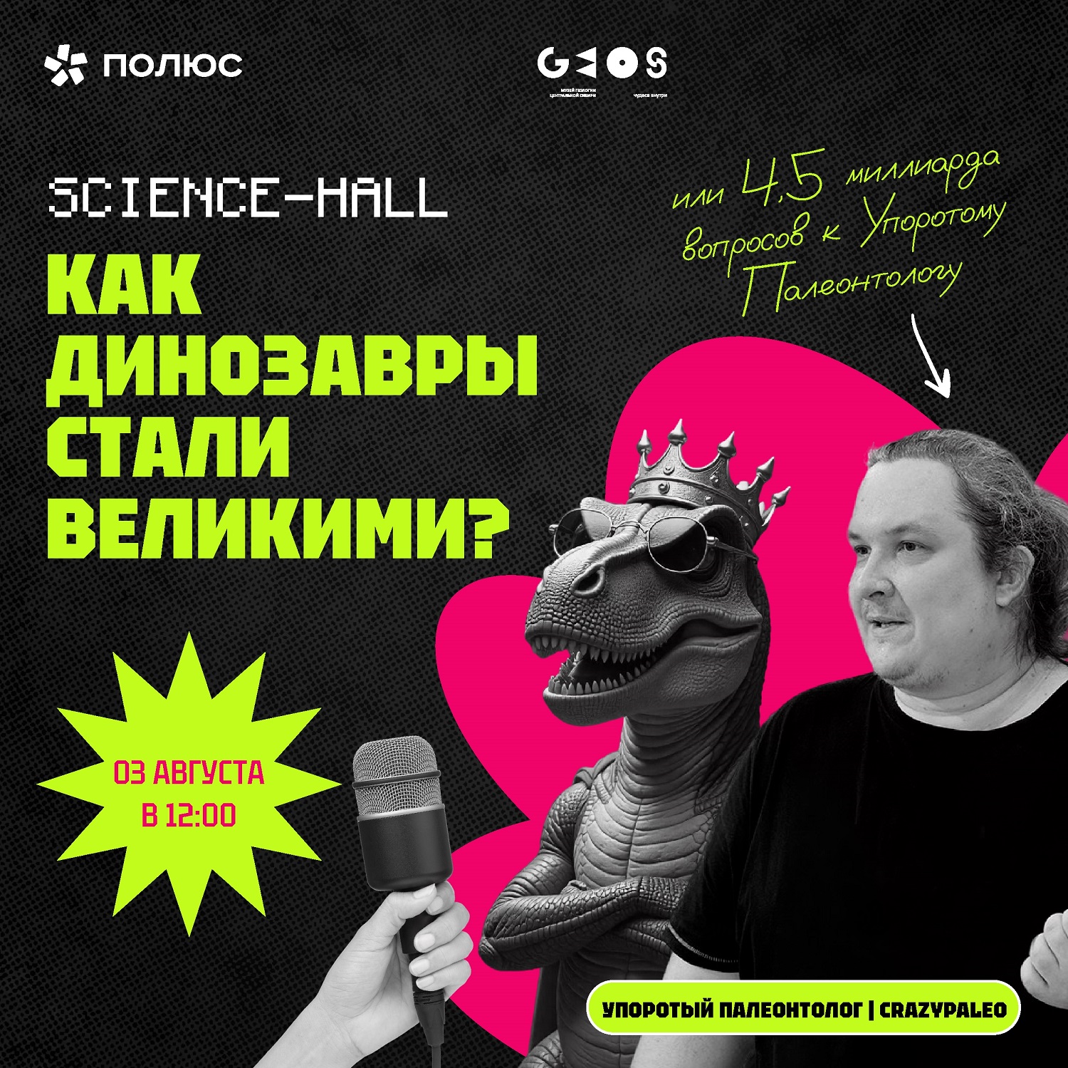 И именно поэтому уже в это воскресенье, 3 августа, зовём вас на первый этим летом science-hall с автором канала Упоротый Палеонтолог Дмитрием Соболевым
