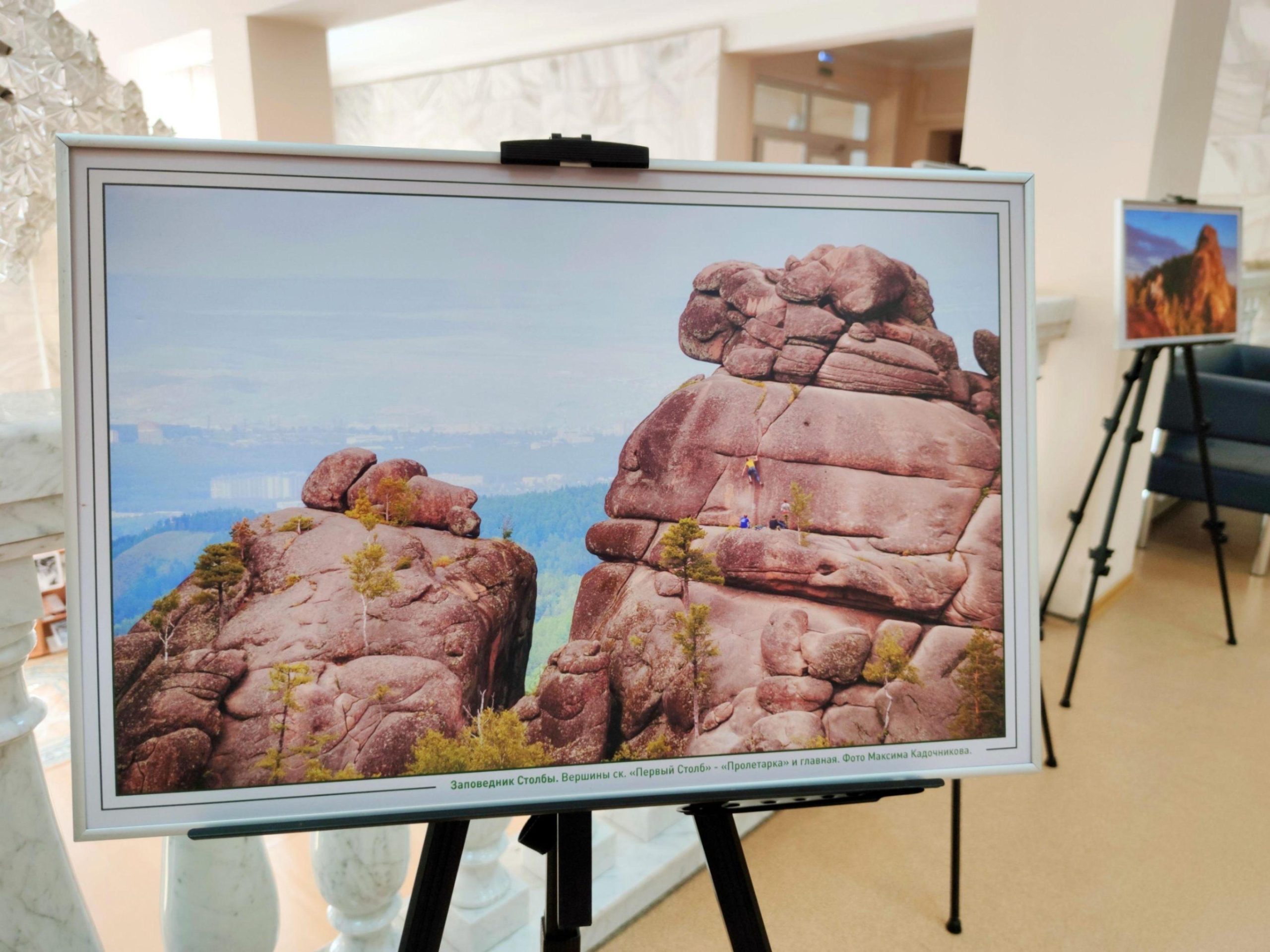 Выставка посвящена дню рождения национального парка «Красноярские Столбы». Национальный парк потрясает масштабными и разнообразными ландшафтами, уникальной сибирской природой. Это старейшая в России особо охраняемая природная территория, созданная в 1925 году по инициативе местных жителей для сохранения живописного уголка от варварской рубки леса и добычи природного камня, получила своё название не случайно. Основной достопримечательностью территории Саянских отрогов стали сиенитовые скалы, по велению природы принявшие облик исполинских великанов с угадываемыми очертаниями людей, животных и мифологических существ, с уникальной структурой ходов и лазов. В настоящее время в ведении нацпарка «Красноярские Столбы» находится управление Ассоциации заповедников и национальных парков Алтае-Саянского экорегиона.