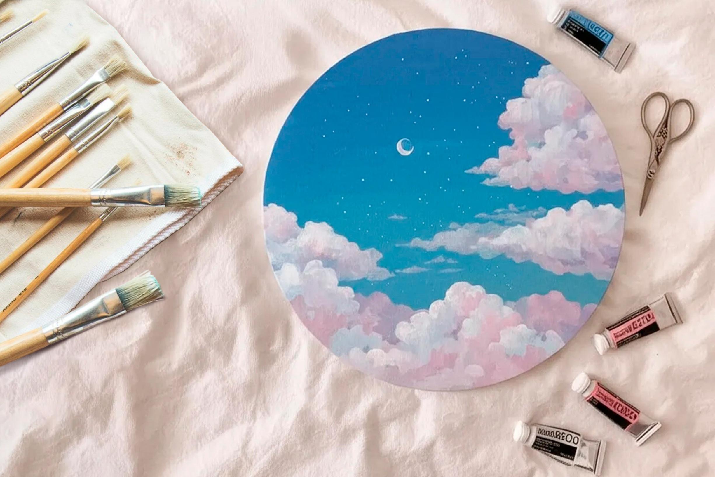Интерактивное занятие в музее – это возможность попробовать разные материалы и работу в новых техниках. В этот раз участники будут писать небо акрилом. Небо на картинах художников присутствует не только в качестве фона или акцента. Оно помогает выразить чувства и эмоции.