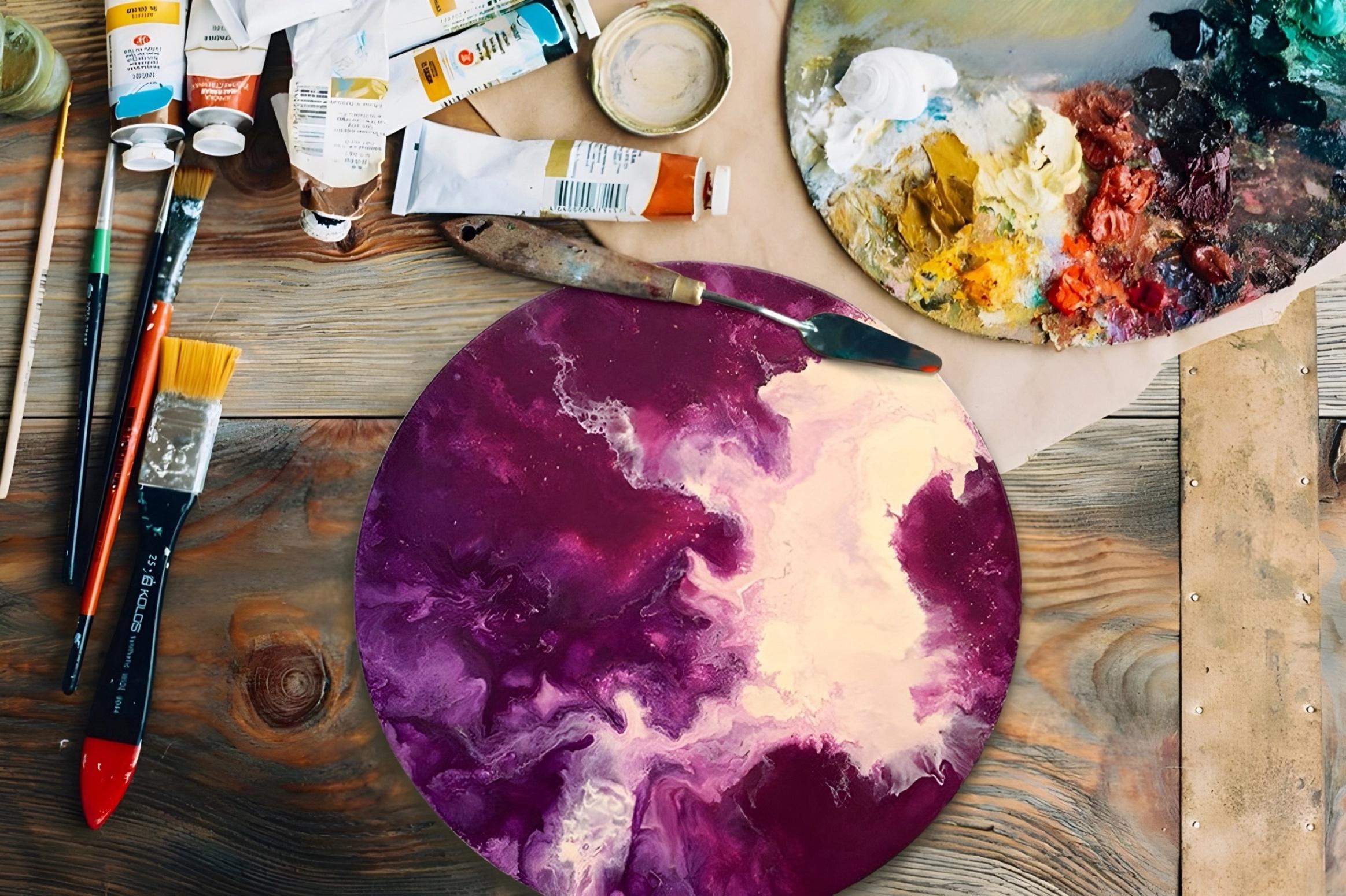На интерактивном занятии участники познакомятся с основами живописи акрилом и создадут свое абстрактное декоративное панно на деревянном борде.