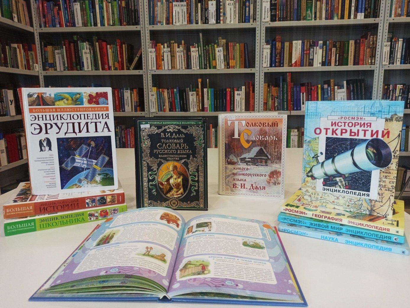 Словари и справочники служат человеку на различных жизненных этапах для расширения знаний и повышения языковой культуры. Их заслуженно называют спутниками цивилизации. Посетители погрузятся в многообразный мир справочных изданий, получат информацию о видах и типах словарей и энциклопедий. Познакомятся с современными изданиями школьных и специализированных словарей – справочников, найдут интересную и познавательную информацию в представленных на выставке тематических энциклопедиях.
