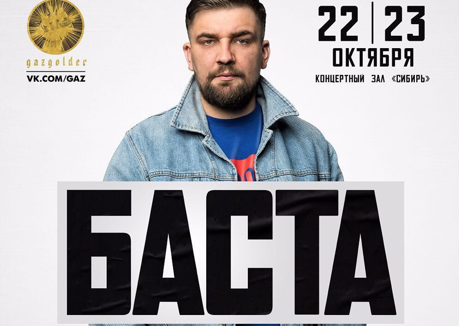 Этот концерт переносился по техническим причинам. Теперь даты определены Баста выступает в Красноярске два дня подряд, 22 и 23 октября. Изменилась и площадка выступления. Ранее приобретённые билеты НАДО СДАТЬ или ОБМЕНЯТЬ на билет с новой датой. Это можно сделать по адресу: Авиаторов, 19, «Гранд Холл Сибирь», оф.2-06.