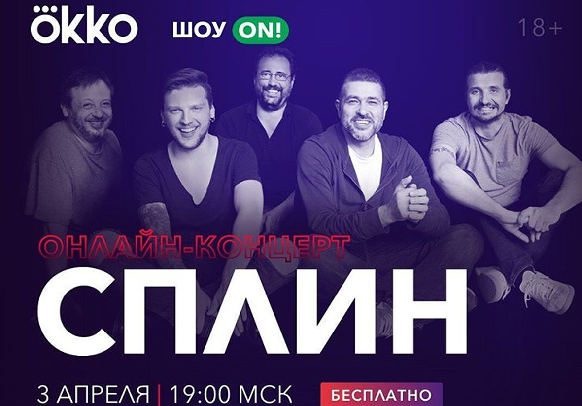 3 апреля в 19:00 по московскому времени на Okko.tv пройдет онлайн-концерт группы «Сплин». Таких концертов в проекте «Шоу ON!» будет несколько. Как попасть: зайти в назначенное время в онлайн-кинотеатр Okko.tv, или в Okko в «ВКонтакте» и в «Одноклассниках».