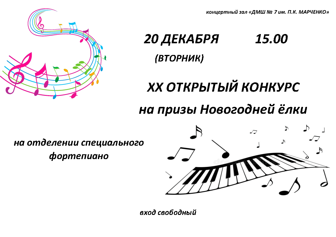 20 декабря в концертном зале школы на отделении специального фортепиано состоится юбилейный XX конкурс этюдов на призы новогодней ёлки. Интрига конкурса заключается в том, что члены жюри не знают, кто из участников конкурса исполняет этюд. Все конкурсанты исполняют один и тот же этюд, что исключает различную сложность программы и уравнивает шансы всех участников. Ну и конечно же, сюрпризом для всех становится появление Деда Мороза, который тоже внимательно слушал выступления и составил своё мнение, которое и хотел бы высказать…