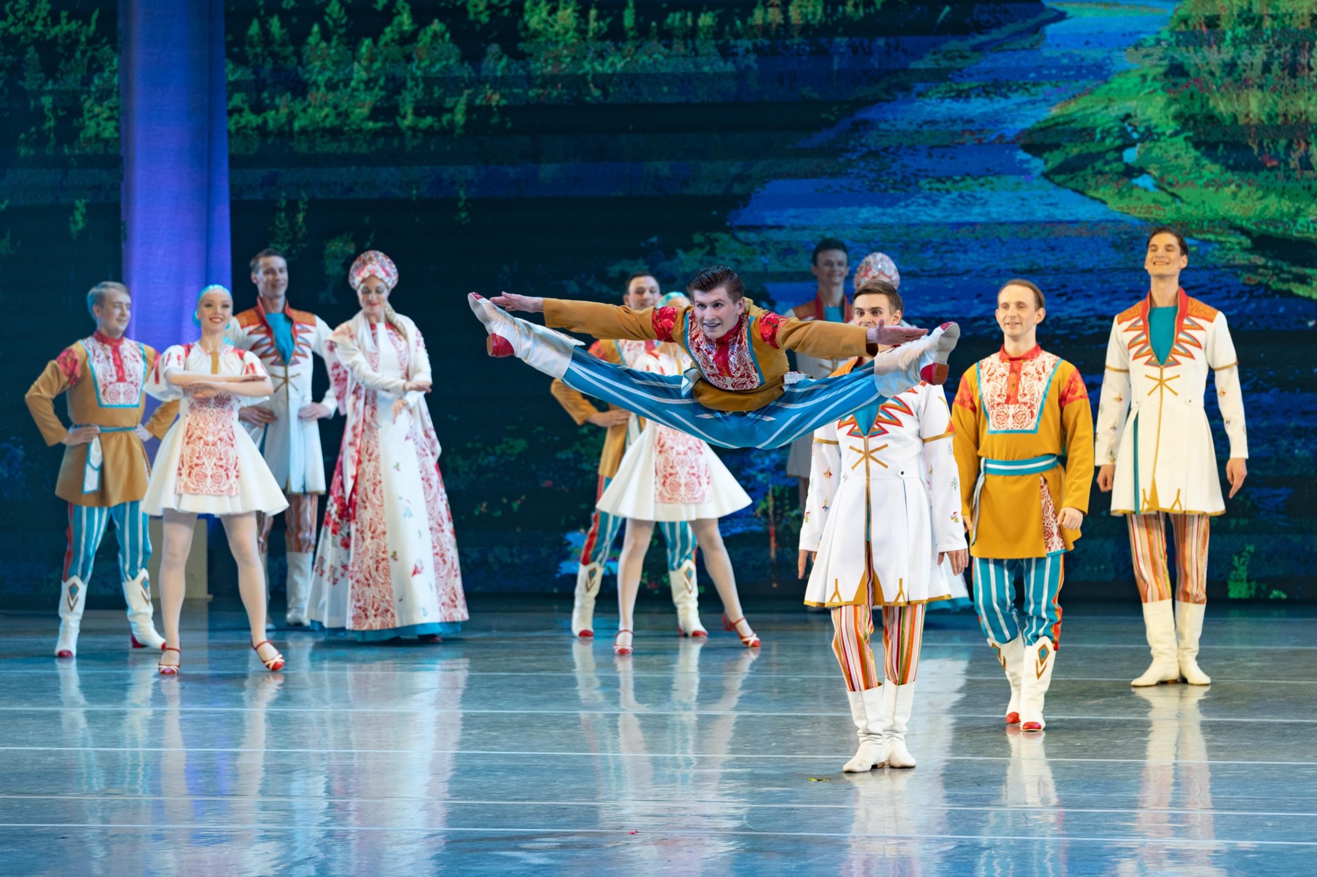 На сцене – Красноярский академический государственный ансамбль танца Сибири имени Михаила Семеновича Годенко. Главный балетмейстер – кавалер ордена Дружбы, народная артистка РСФСР Лидия Дзьобак. В программе – «Валенки», «Музыка ледяной степи», «Подснежник», «Качинские деды», «Сербская сюита» и другие постановки.